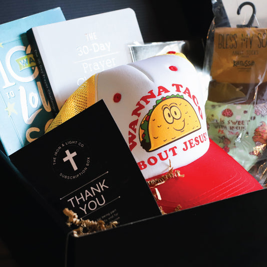 Each box contains 4-5 carefully selected products designed to enrich your Christian faith journey: